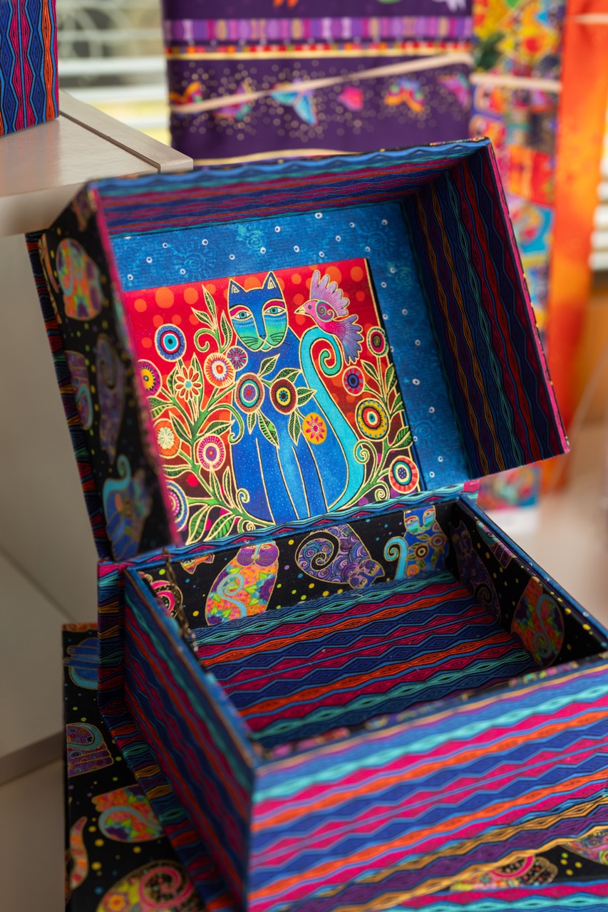 “From the journals, I started doing boxes, which is the origin of the cartonnage technique that I teach now. I just fell in love. I started making more and more boxes, and my husband said, ‘ What are you going to do with all those boxes?’