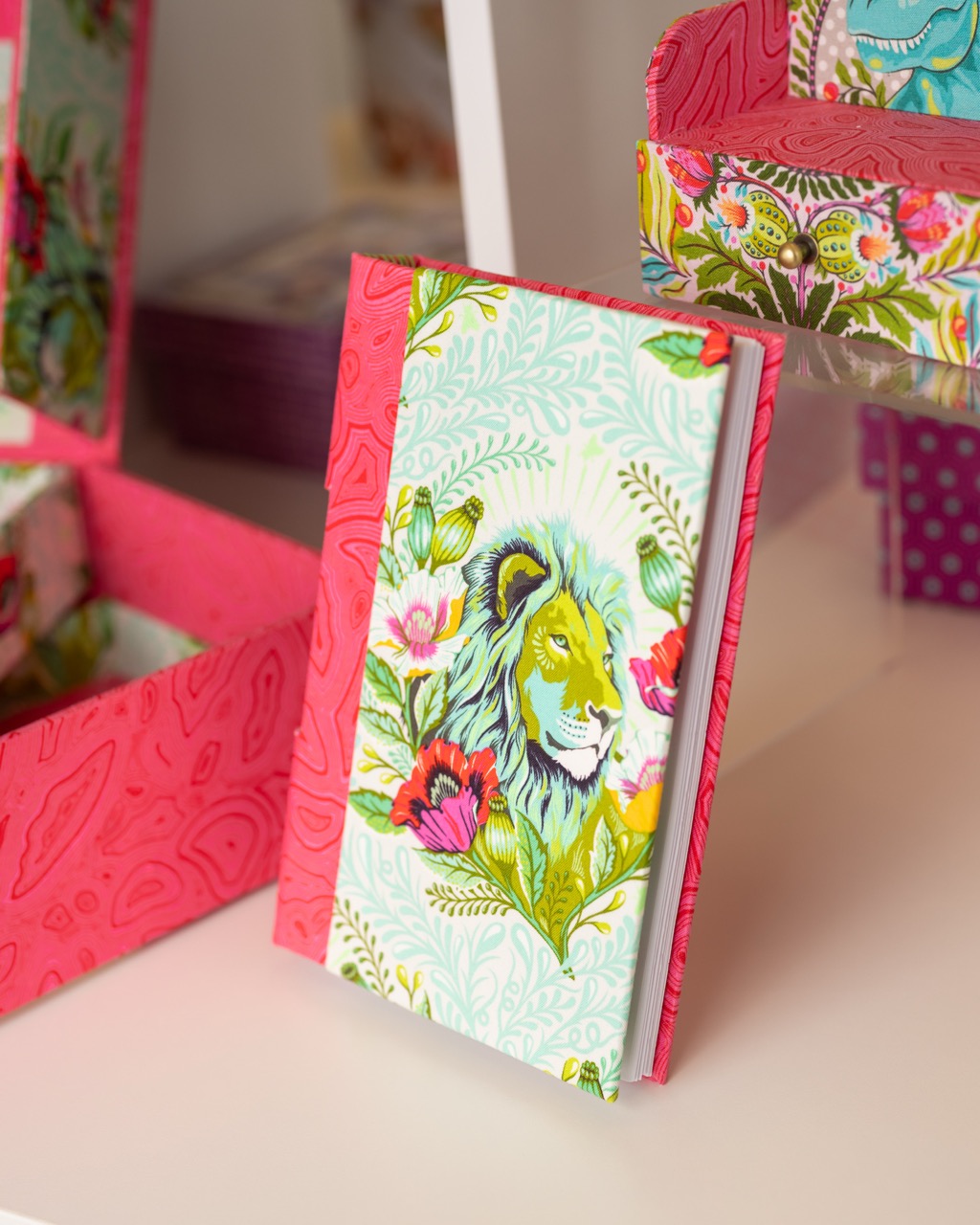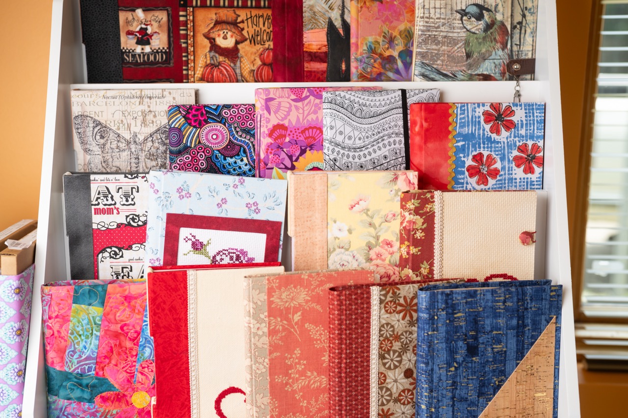 I started crafting more and making things to go to craft shows. So one day I saw a video of someone making a cover for a journal using fabric, cardboard, and glue instead of sewing. It looked fun. When I made the first one, I said, “That’s it!”